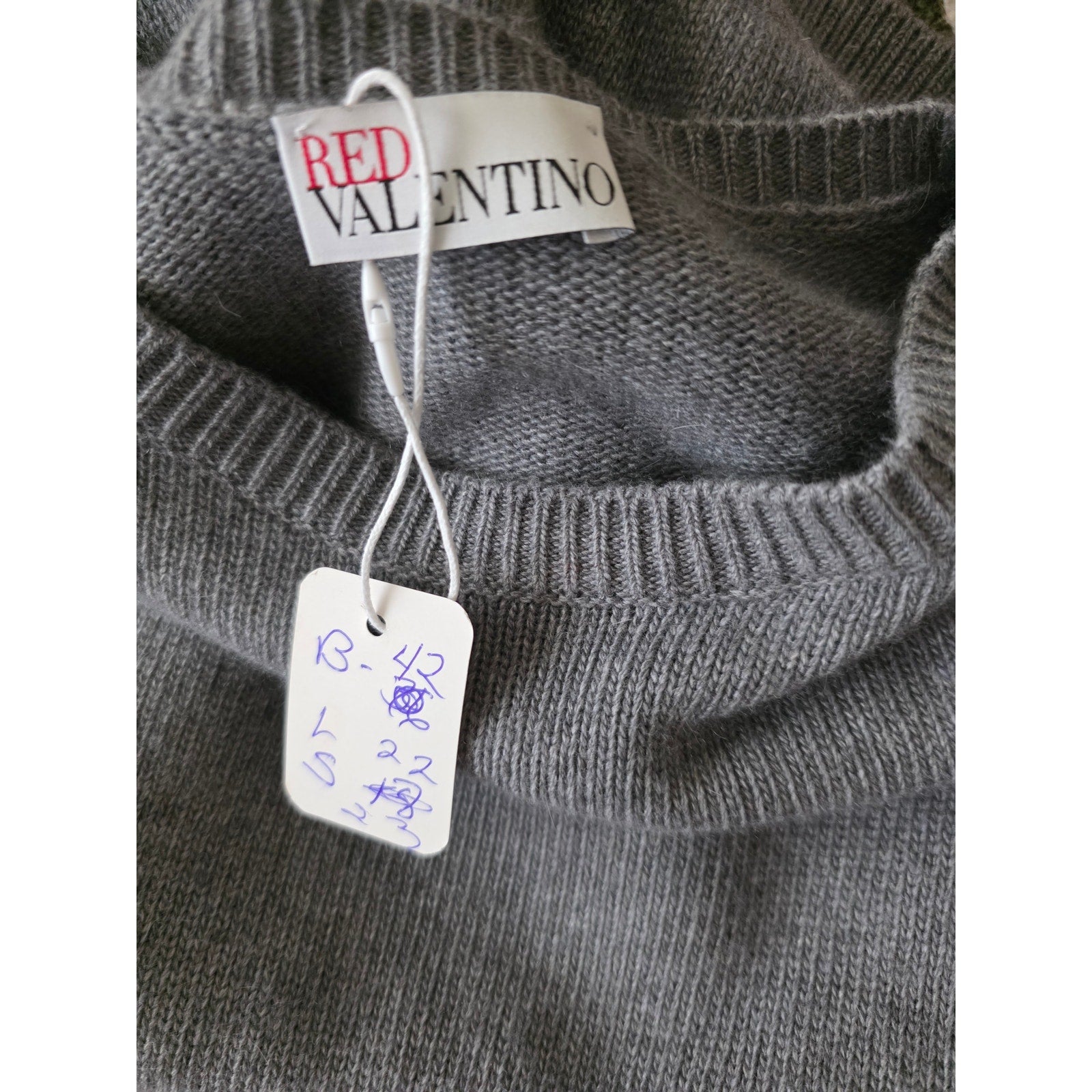 This is a beautiful Valentino red sweater with unique black velvet lace-up detailing on the sides. The sweater is in perfect condition and has a stylish gray shade. The size is a Small, but please refer to the measurements below as it can also fit a Medium.